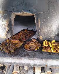 cerdo que se cocina en horno de barro acompañado de yuca cocida, envueltos de plátano,